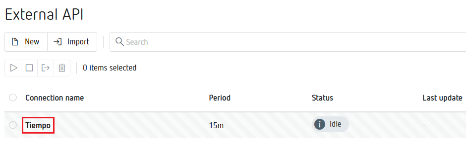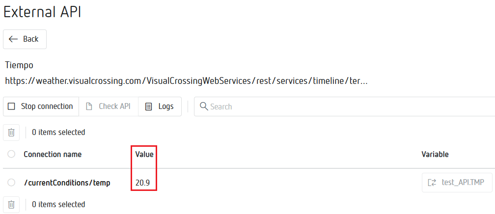 Utilizaremos el mismo tiempo de guardado a la hora de configurar las variables en el módulo External API.