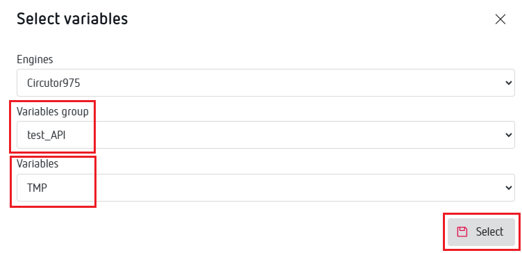 - Se selecciona el grupo de variables y la variable en concreto donde se quiere guardar el valor: