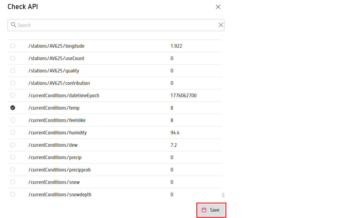 Una variable calculada forzable es una variable que se puede sobrescribir con un valor cualquiera. Esto nos servirá para enlazar nuestro módulo External API con esta variable. De esta forma los valores que seleccionemos de la API JSON de Visualcrossing se guardarán en la variable calculada forzable que nosotros configuremos.