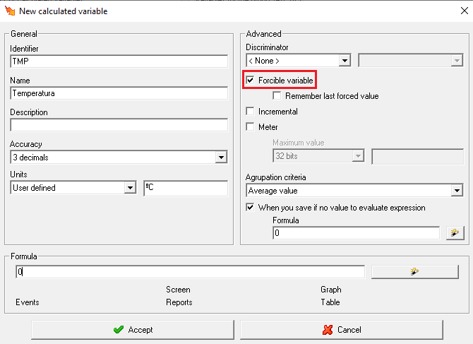 - Crear la variable calculada con el check de Variable forzable marcado: